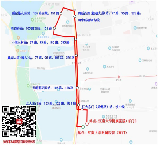 為進一步完善江大附院周邊公交線網,開通專線和接駁線各一條,具體如下: